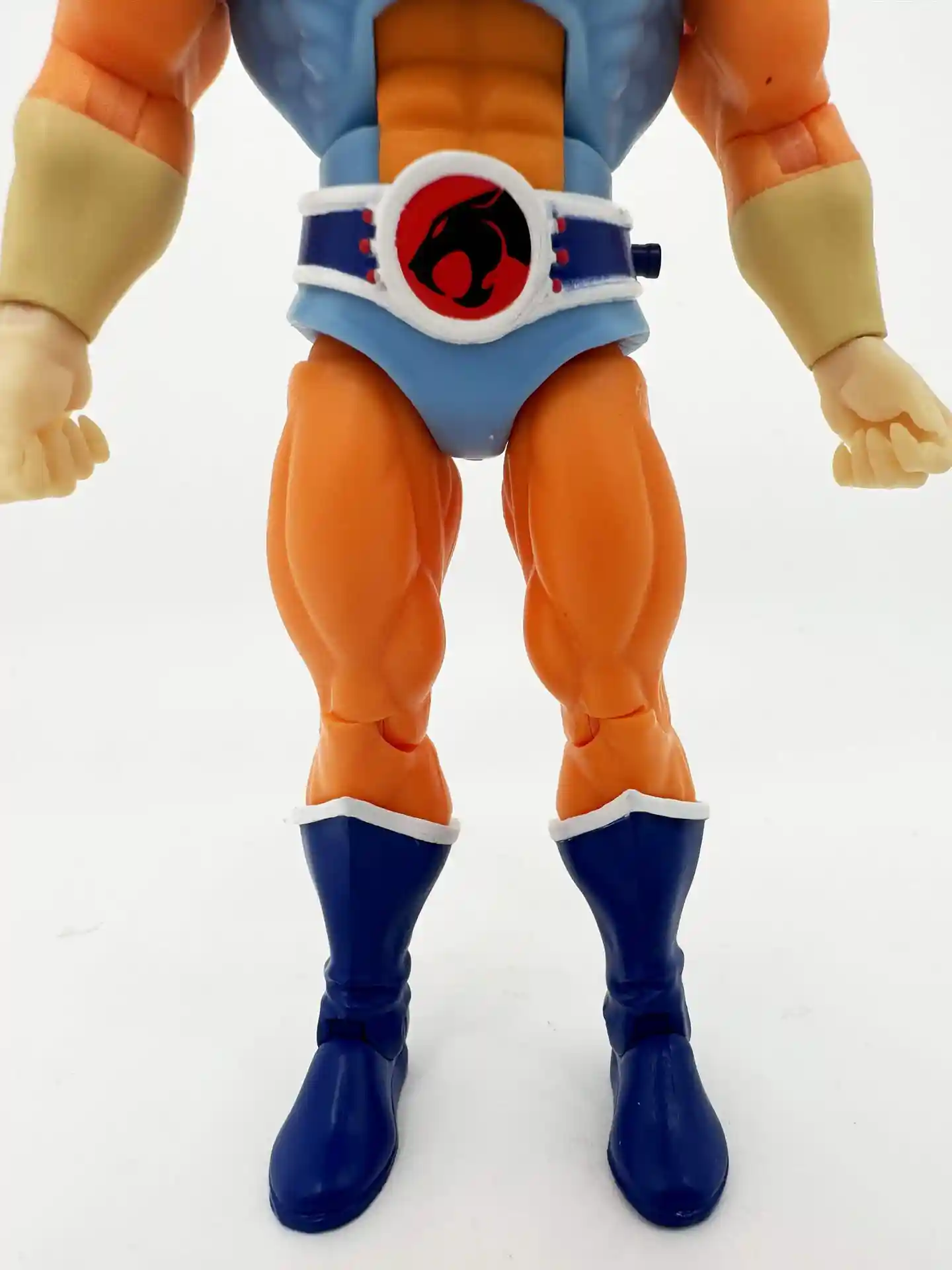 Legs: Lion-O’s legs again share the same buck as Mirror Lion-O, and the nice thing about them is that they have an additional articulation point. He now includes thigh cuts, which the original version of original version of Lion-O did not have. Also you can see that you can notice this thigh cut as it seems they should have adjusted the length of his shorts to help hide that joint a little better. Just like the elbow joint, this new buck of Lion-O includes pin-less knee joints as well which look great and also move very smoothly. He also has ratcheted ankle joints to make for a much more stable stance.