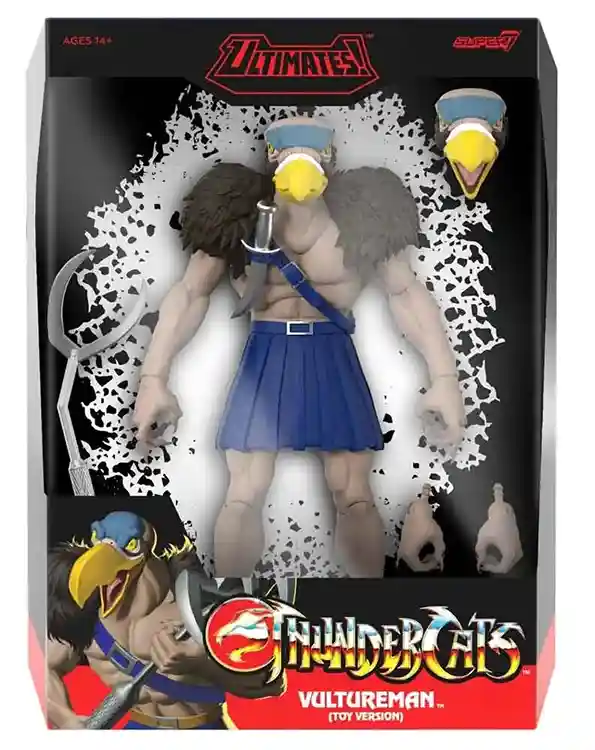 Vultureman Product Description: Get ready to bring some villainous ingenuity to your ThunderCats collection with the Vultureman™ ULTIMATES! figure! Inspired by the classic adventures of the ThunderCats animated series, this highly detailed 7-inch scale figure captures Vultureman’s devious intellect and menacing presence, all while sporting a retro toy-inspired color scheme that’s sure to delight fans of the original line.