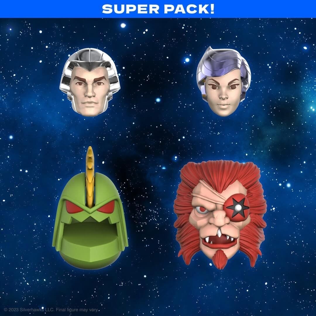 If you purchase the entire wave from Super7 directly, you can get the Superpack! Assemble the complete SilverHawks ULTIMATES! Wave 4 collection and receive an Exclusive Super Pack! Alternate heads for each of these characters! Available only with the purchase of the full wave of Super7 ULTIMATES! Figures from Super7.com.