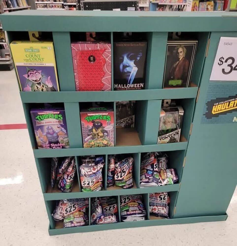 Thanks to collector Carlos Noel Hernadez, we get to see some of the products that will be available during this year’s Target Collector’s Spot Neca Haulathon! It looks like some Target Stores are placing the merchandise out early, so be on the look out for these displays! Let’s look at the image closely and see what we can spot! We can see a clearer photo of goodies that David Thompson nabbed as well! The first thing that catches my eye is The Sesame Street Count figure! Then you will see NECA TMNT Toon Shredder and Dark Leo figures! Then there are 2 TMNT Mirage figures, on Shredder and one Hunter Leo figure. Then I can see a Pee Wee Herman, Beetle Juice Wedding Tux Figure and Mike Myers from Halloween!