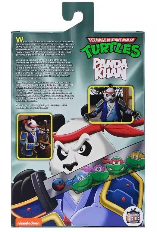 Official Product Description: From NECA in partnership with Gaelstone Media, the highly requested Ultimate Panda Khan action figure is finally ready to join your TMNT collection! This Samurai Panda from a strange land finds himself out of place in the big city trying to get back home. Designed in a Saturday morning cartoon style, this 7-inch scale figure includes extra hands, morning qi, backpack, claws, bamboo hat, and interchangeable heads. (The tops of the heads are also interchangeable and removable for the hat.)