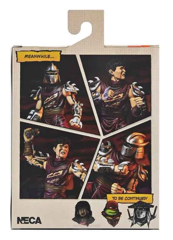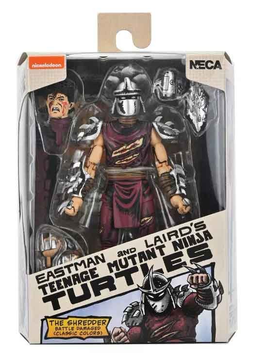 Official Product Description: Based on the original Eastman & Laird Teenage Mutant Ninja Turtles comic books from Mirage Studios! Oroku Saki has inherited the role of The Shredder from his fallen brother, Oroku Nagi. The bitter rivalry between the Oroku and Hamato clans rages on, and The Foot will stop at nothing until their former master is avenged. Featuring a fan-demanded classic color paint deco, this battle-damaged 7-inch scale action figure includes interchangeable hands, extra head, thermite grenade, and destroyed gauntlet. Comes in special comic-book tribute window box packaging illustrated by Kevin Eastman.