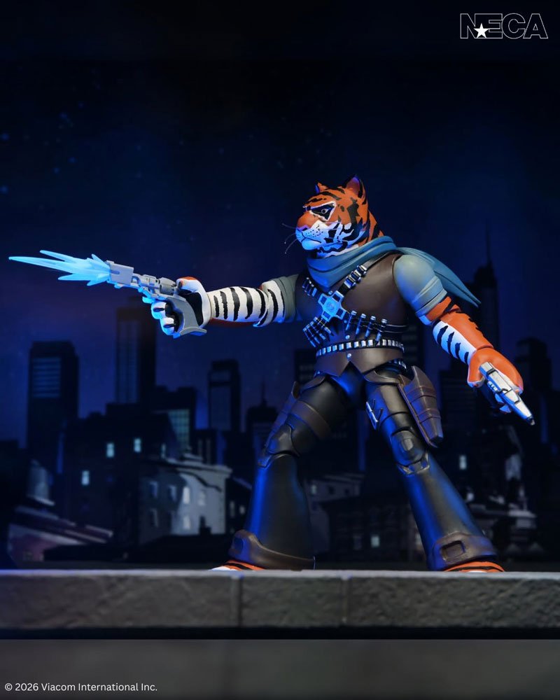 Booyakasha! NECA is proud to present all-new Ultimate action figures from Nickelodeon’s hit 2012 Teenage Mutant Ninja Turtles animated series! Known for its dynamic animation style and character-driven storytelling, the acclaimed show reimagined the heroes in a half shell for a new generation. This 7-inch scale Tiger Claw figure captures the fearsome feline with incredible painted details to replicate his animated appearance. He includes an array of episode-specific accessories: interchangeable heads and hands, blasters, blast effects, machete, and interchangeable robo-arm and accoutrements. The figure comes in collector-friendly packaging with illustrations by TMNT artist Ciro Nieli.