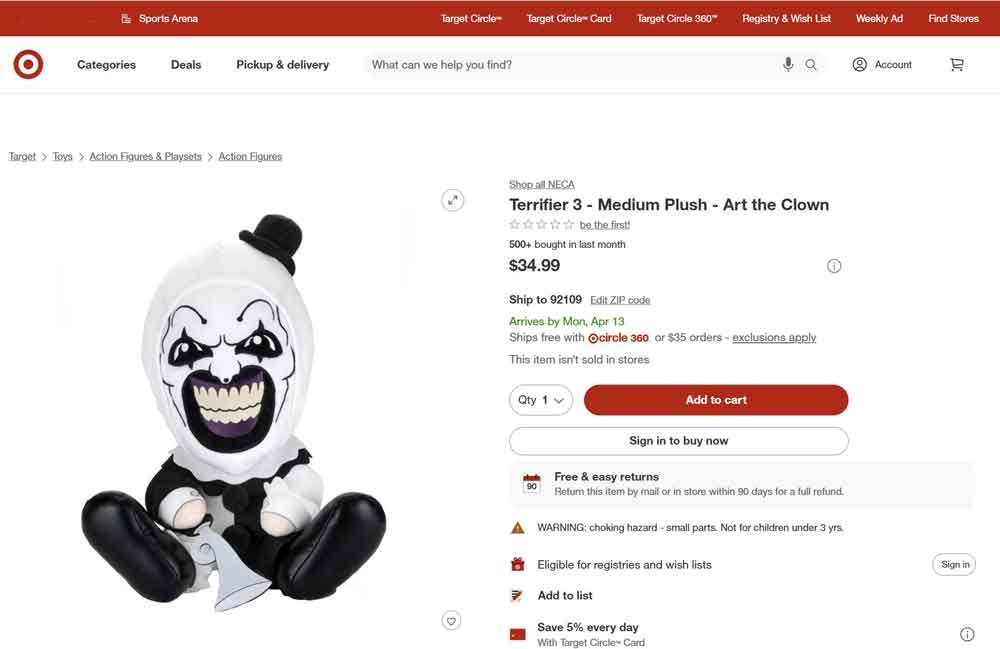 Lastly this week, we have for all you horror fans out there the Terrifier 2 Art the Clown Plush. Purchase it HERE: