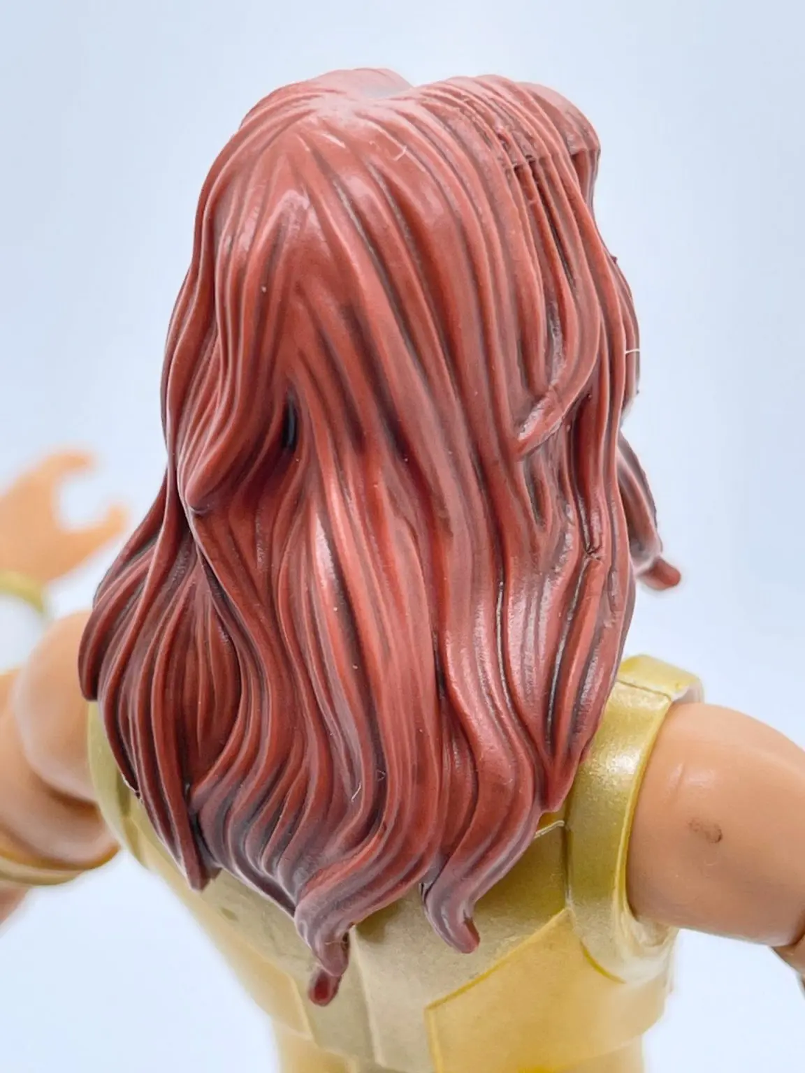 The alternate head features Teela with free-flowing reddish-brown hair. Teela has a more serious and somber look on her face. I really like both head sculpts and go back and forth on which to display her with. These two head sculpts are a vast improvement than the Wave 2 Teela head sculpt. I have seen some people take the extra head, and swap it on the Wave 2 Teela, and I have to say, it looks pretty good.