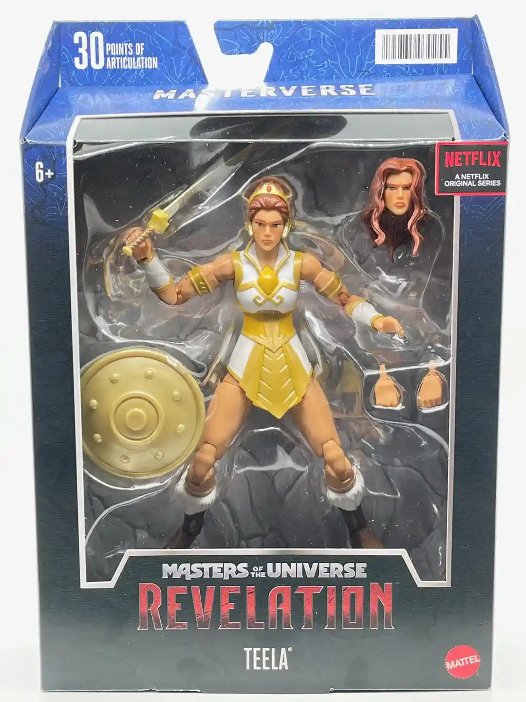 This new version of Teela is the leader of the palace guard version we have all been waiting for! When the first version of Teela joined the Masterverse line, I have to be honest, I was kind of disappointed and it was a bit of a pass for me. I was really hoping for a classic looking Teela figure. Well wait no more, because here she is! This is the quintessential Teela figure, an absolute beauty! Coming right off the screen, this version of Teela looks just like the Netflix Revelation animated cartoon series! Complete with her hair up in a updo, with her tiara, and classic battle dress outfit! Teela is adorned with gold accents, and beautiful painted! She includes an all new sword and shield, reminiscent of that of the vintage figure. And this Teela even includes an alternate head with her hair down looking like a more wild version of Teela ready to do battle. Let’s dive in and take a look at this amazing new Teela figure!