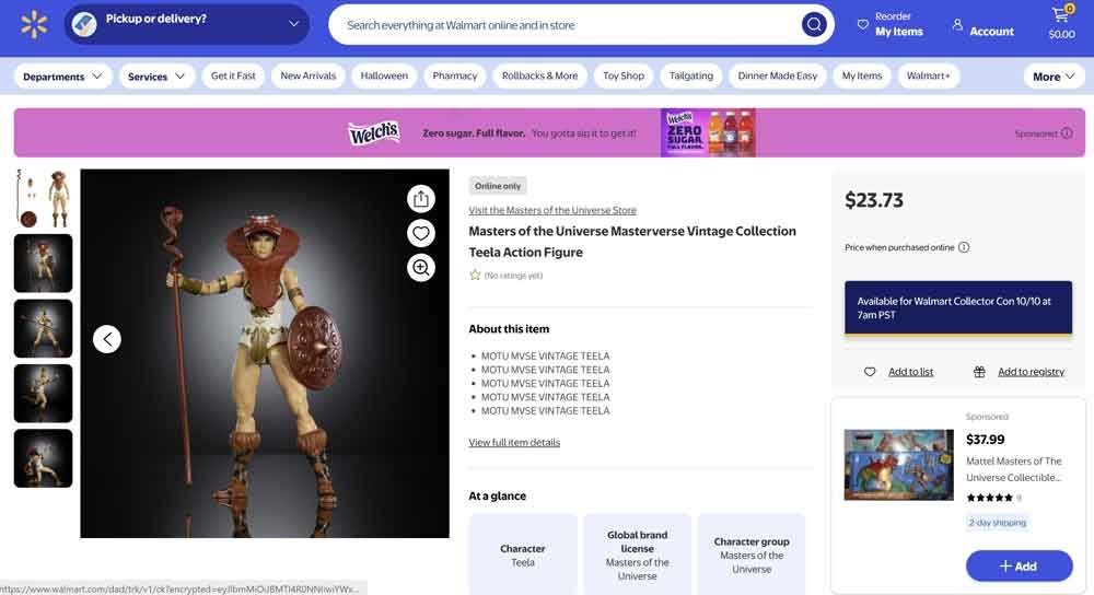 Walmart is pulling back the curtain a little more for their upcoming October 2025 Walmart Collector Con, and I couldn’t be more excited to share what’s surfacing! Hot on the heels of today’s discovery of the 200x MOTU Origins Samurai He-Man listing, another gem has appeared on Walmart’s preview page in the form a Masterverse Vintage Collection Teela listing! While we don’t yet know what this figure will look like, just the listing alone is enough to get us excited, especially since the Vintage Collection branding suggests we’re in for something really special that pays homage to the classic roots of Masters of the Universe. And if that wasn’t enough to get the anticipation flowing, we can look forward to some killer packaging because Nate Baertsch is expected to work his incredible magic once again, channeling the legendary style of Errol McCarthy’s original MOTU illustrations for the box back art. With this combo of vintage inspiration and modern Masterverse detail, Walmart Collector Con October 2025 is shaping up to be one heck of a showcase although we are not sure if these listings were meant for prying eyes!