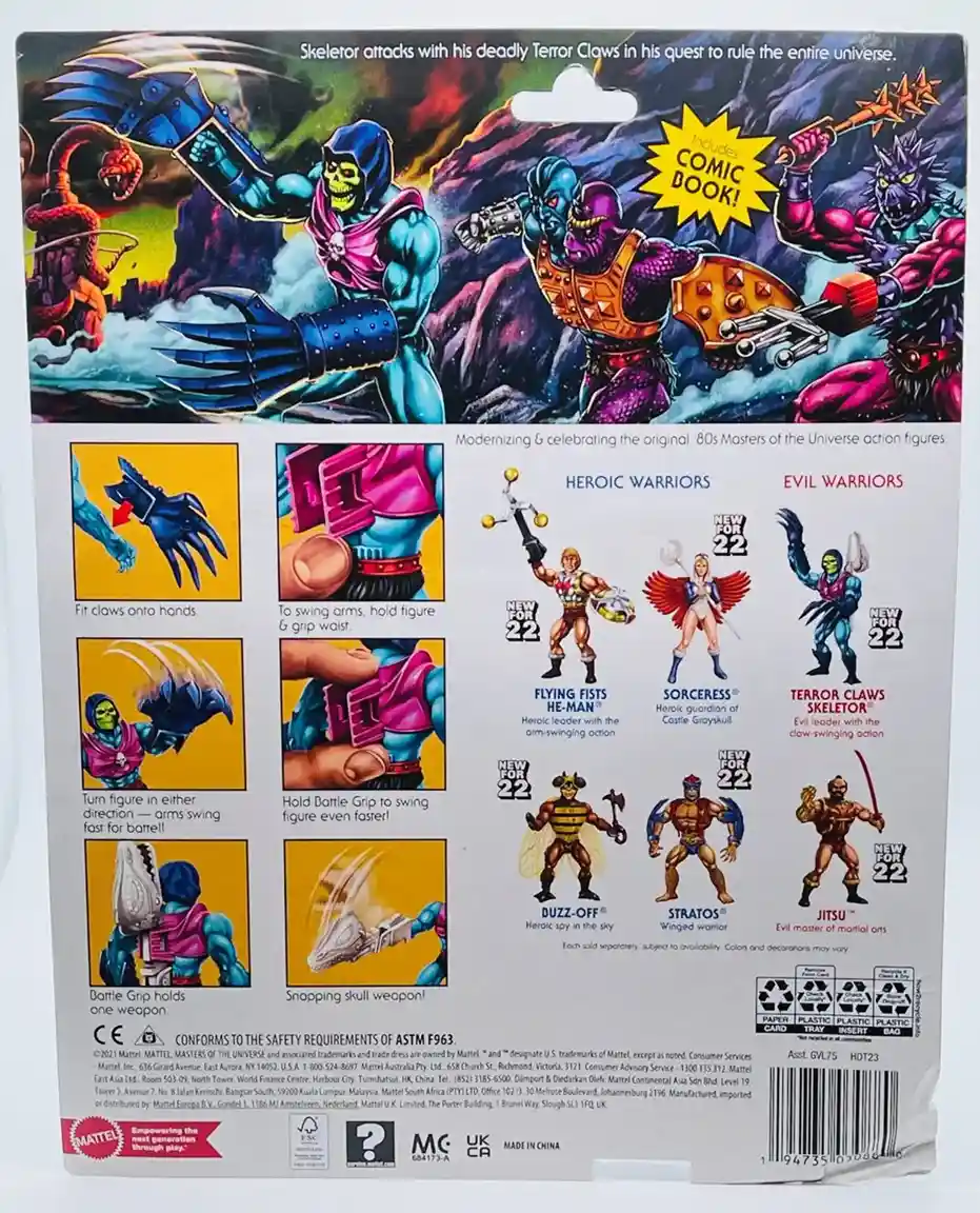 The art on the upper right of the Origins Deluxe card is reminiscent of the vintage Terror Claws Skeletor (as seen below in the upper left of the vintage card. I really love the way they illustrated the action feature as it seems to come to life.