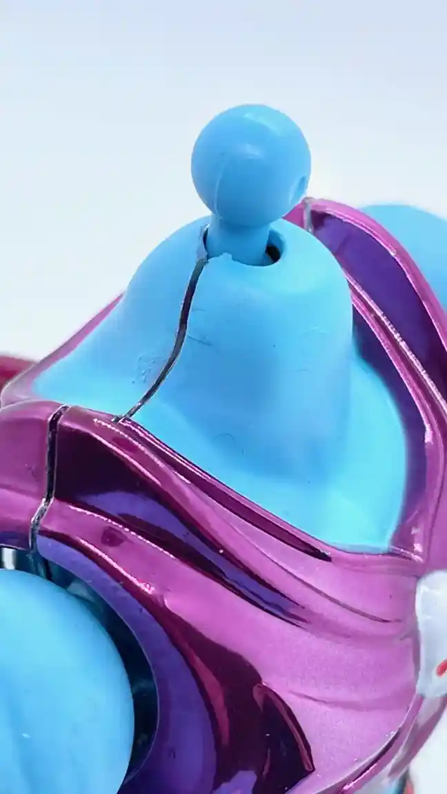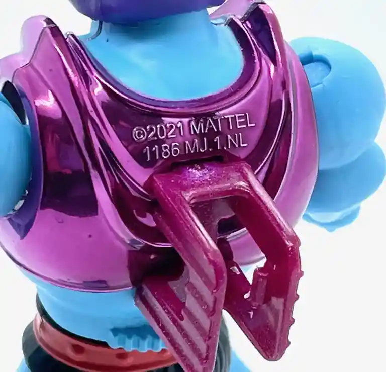 Like every other Terror Claws Skeletor I’ve seen, mine also suffers from quality control issues. If paint chipping occurs, you will see the vac metal underneath the blue skin because the entire torso is sprayed in magenta and blue paint is applied over it. Although mine does not suffer from severe paint chipping, you can see the neck and shoulders are separating from each other, giving it a split look. Like Flying Fists He-Man, the ball joint on the neck has limited articulation but the tooling is a tradeoff to get the neat action figure.