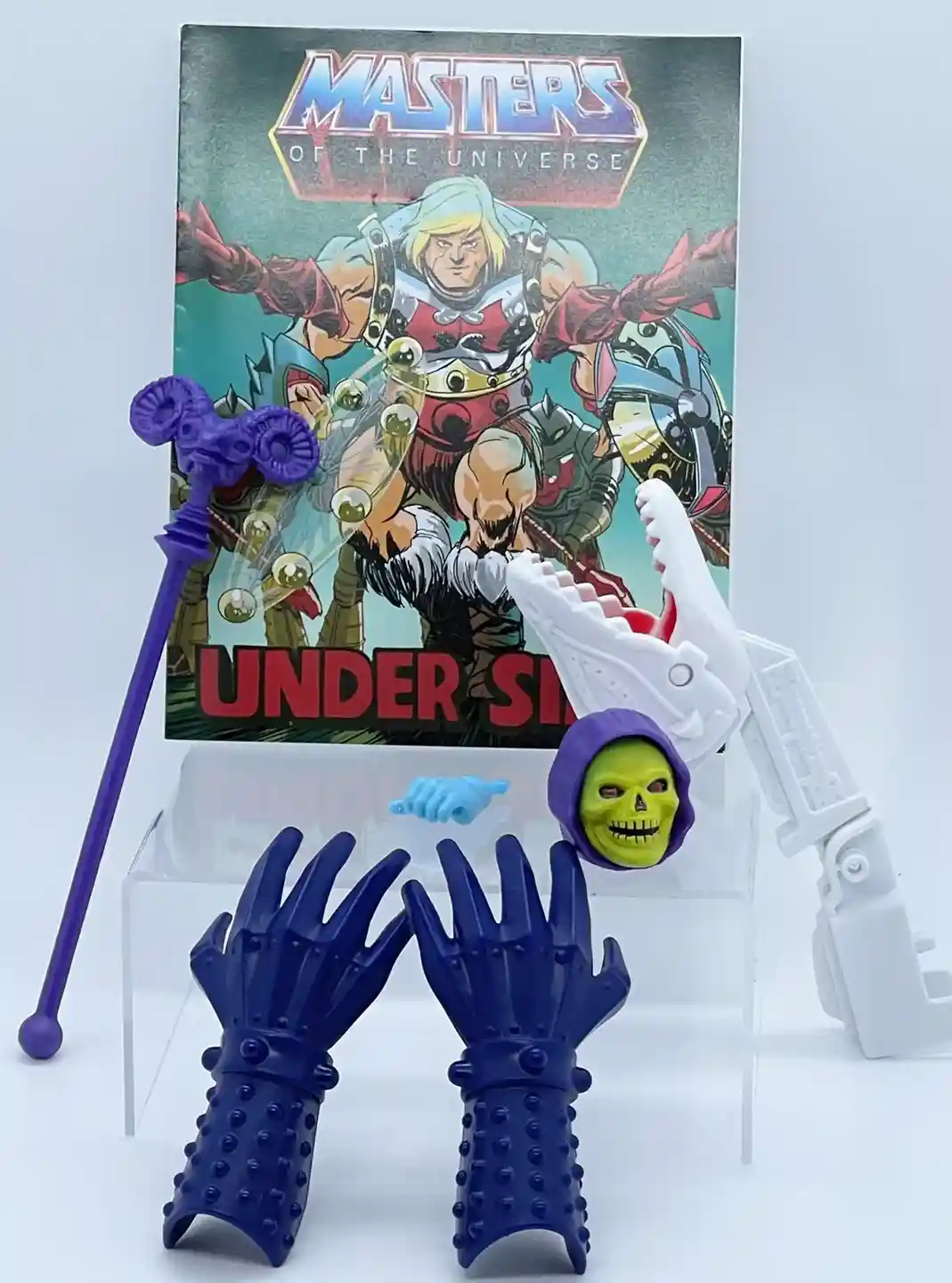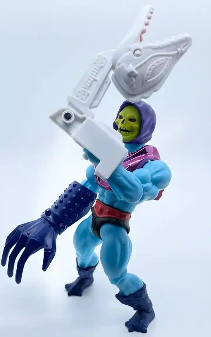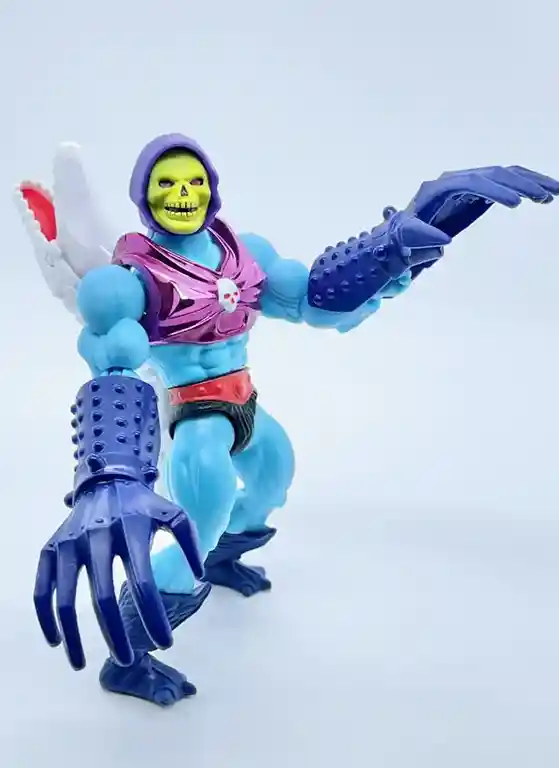 Terror Claws Skeletor comes with an extra gripping hand, a standard havoc staff, his Terror claws and his Dragon weapon!