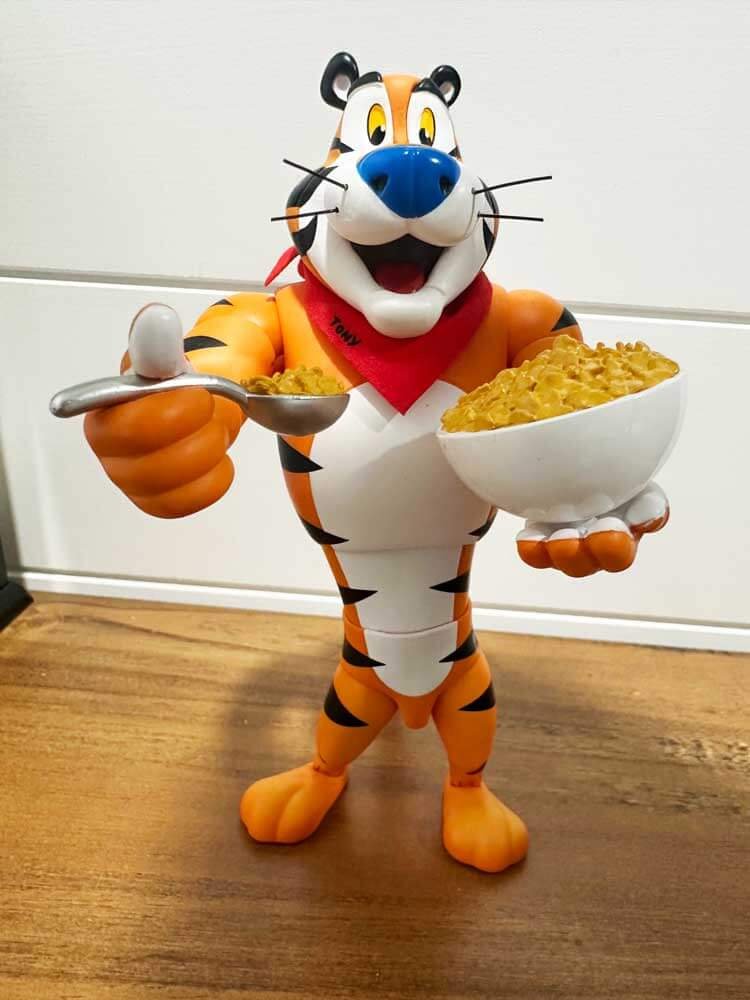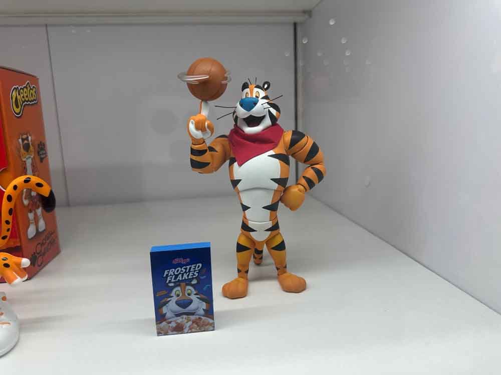 This set includes multiple accessories to bring Tony’s energetic personality to life, including interchangeable hands, a Kellogg’s Frosted Flakes cereal box, a bowl of Kellogg’s Frosted Flakes with spoon, and a basketball with a spinning effect piece – perfect for recreating his legendary commercials. Packaged in a premium box designed to look like an actual box of Kellogg’s Frosted Flakes, this collectible blends nostalgia with high-quality craftsmanship.