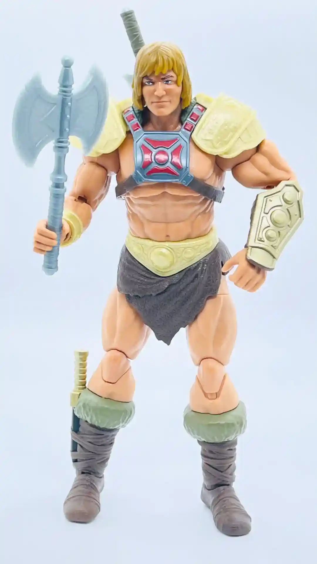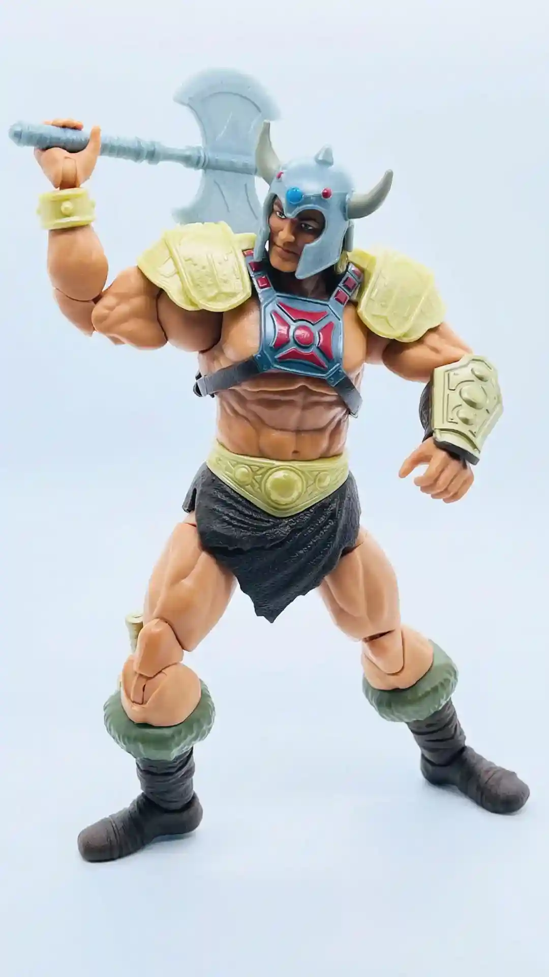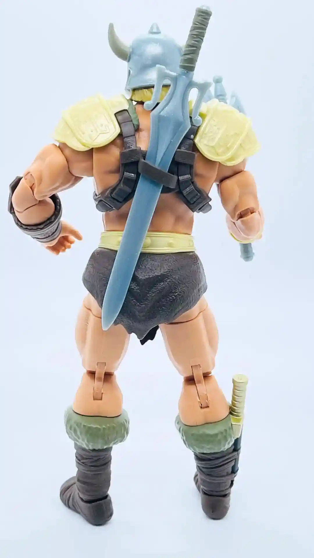 This version of Viking He-Man with his alternate heads and removeable should armor and various accessories, allows you to display your Viking He-Man in a variety of different styles! This is great because that will bring variety to your shelf display and allow you to display him in both classic He-Man style, or Mark Tyler Concept Viking style. Swapping out his accessories, head and shoulder armor will vastly change how your Viking He-Man will look on your shelf, but having all these options is just amazing!