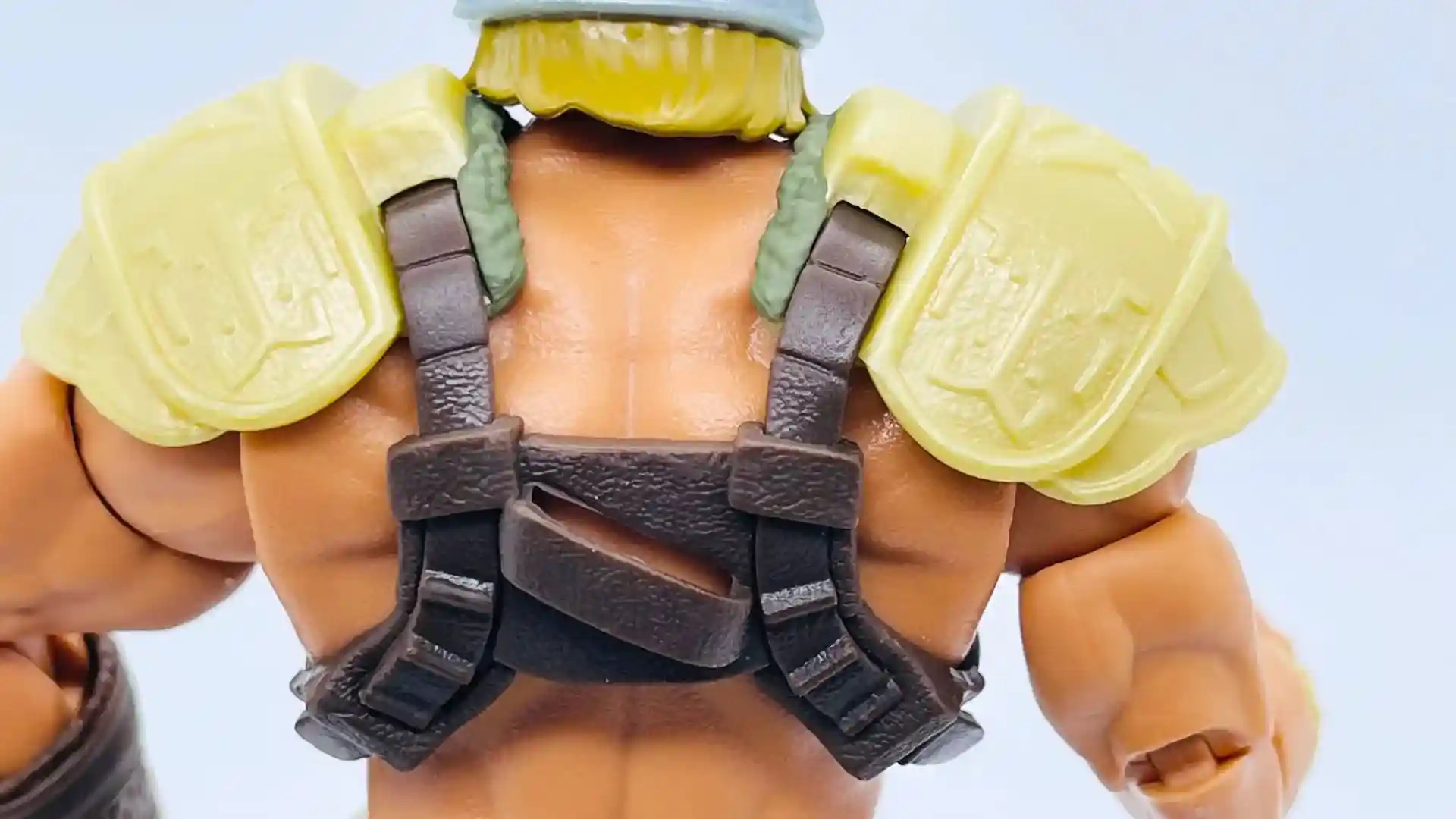 The arms are asymmetrical, meaning they are different, and this gives a great look to the figure as you can see the right arm has the standard cuff while the left arm has a removable bracer that is different than the previous versions. This bracer is painted gold and has a brown leather, which matches the texture of the loin cloth on the underside. The arms are the made from the standard Masterverse buck but with the addition of the bracer, it makes the arms more unique.