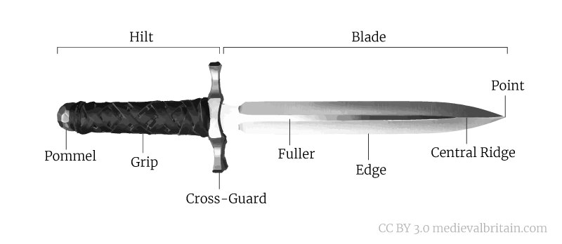 The dagger has a short blade with a sharply tapered point, a central spine or fuller, and two cutting edges sharpened the full length of the blade. Featuring a beautiful full cross-guard, the dagger fits nicely into He-Man’s boot although I would challenge the easy access this would give him in battle.