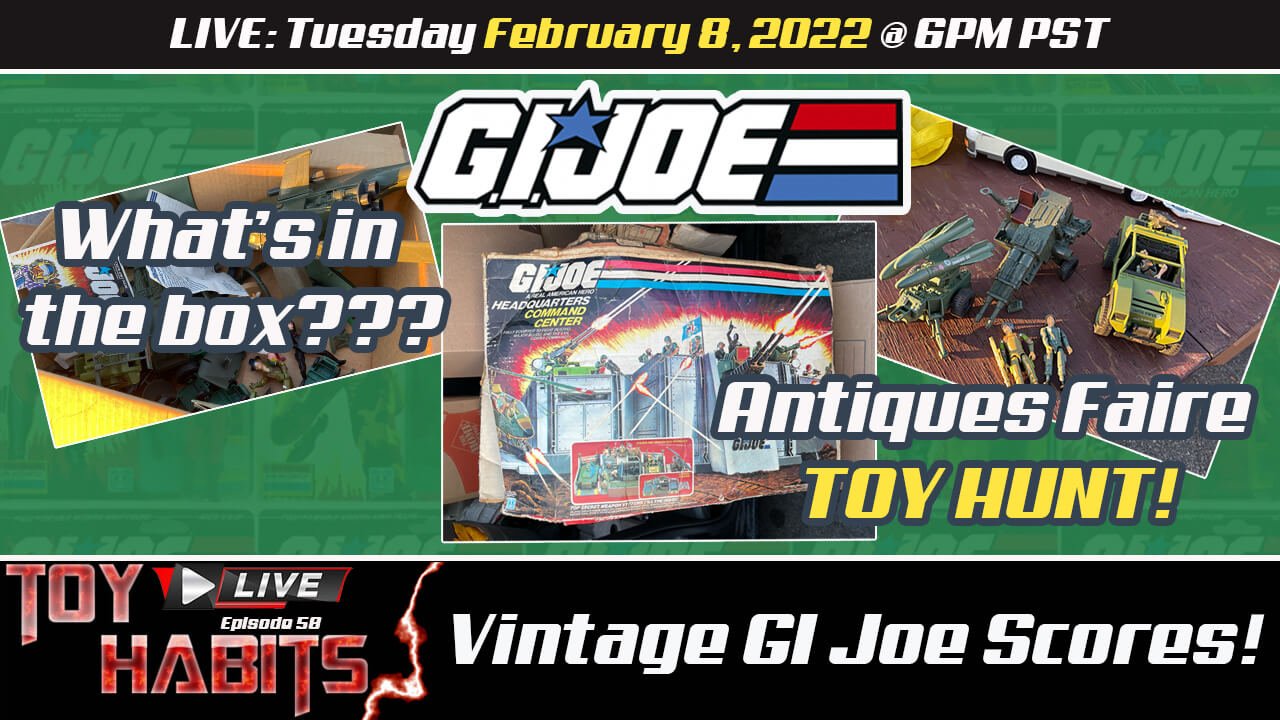Join Michael and Larry as they run through results of a vintage GI Joe Toy Hunt from the Alameda Point Antiques Faire in Alameda California! What did they find? Find out LIVE on Tuesday February 8th 2022 @ 6pm PST!