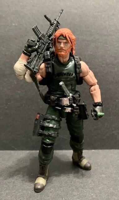 Let’s take a look at his recent Digital Render reveal so we can see what the classified figure will lool like. The character’s facial appearance is based on G.I. Joe comic book writer Larry Hama and was introduced fairly late in the line in 1987. Tunnel Rat has black hair, a bandanna, neckerchief, and paint on his face and arms. He is wearing a green short-sleeved shirt with ammo belt, black gloves and pants, a dark grey belt, and a brown holster. The pack out on Tunnel Rat was quite impressive as he had a very large, olive-green backpack with holes on top for two removable flashlights, a large black machine gun with long grip and huge scope, and an olive-green TNT pack.