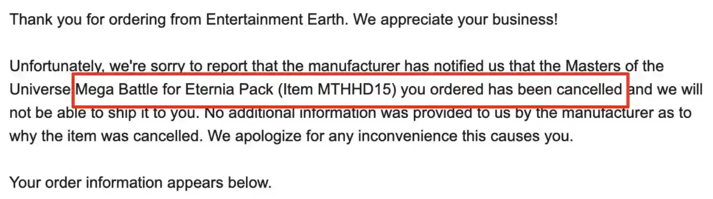We have some sad news to report regarding the MEGA Battle for Eternia 2 set! For those who preordered the set from Entertainment Earth, they sent out a note saying that they hare cancelling preorders and they did not give an explanation. We are guessing that this set might become exclusive to an online retailer but that is just speculation on our part. Given that Entertainment Earth is out of the running, which retailers still have this set up for preorder?