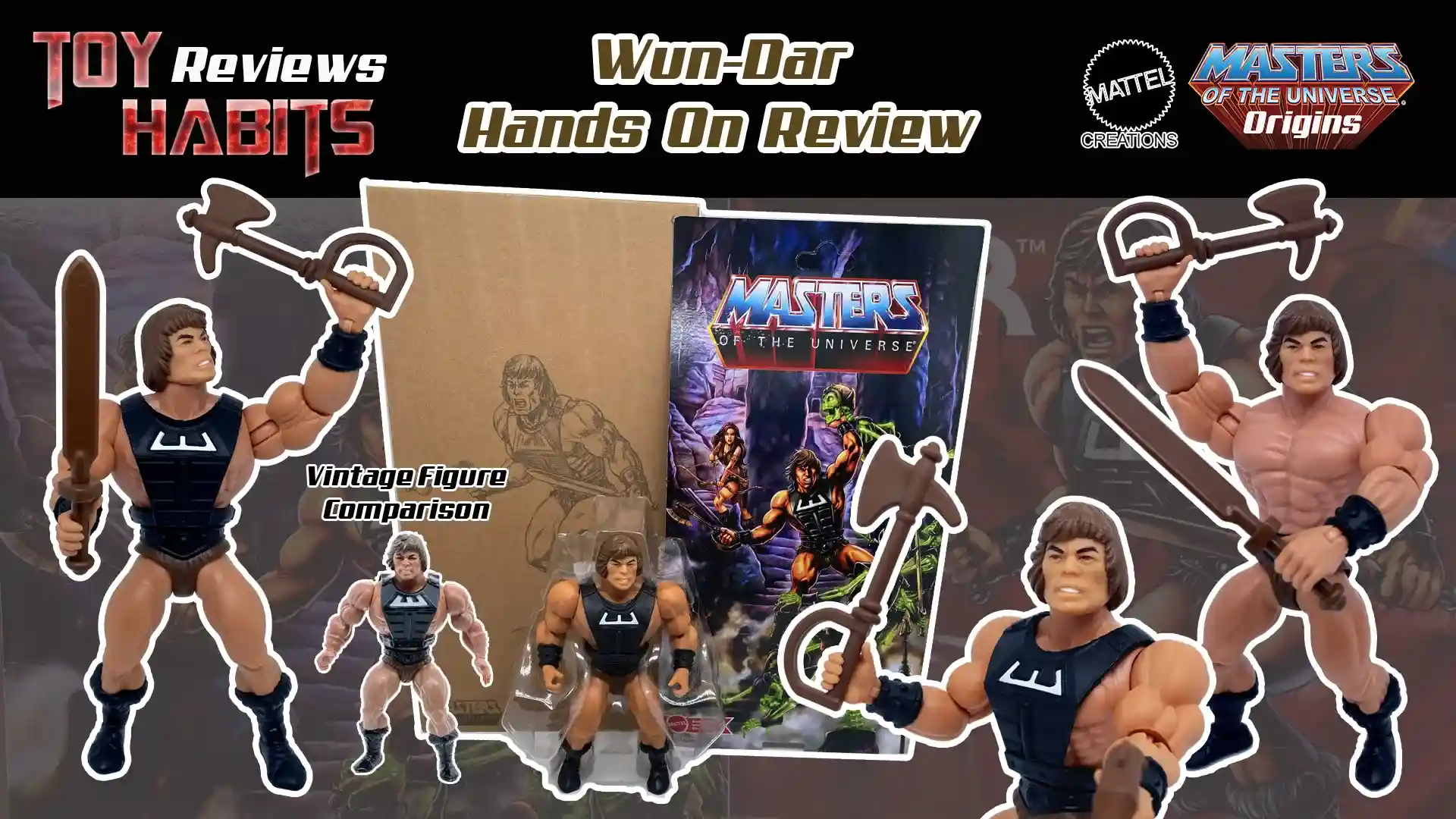 We at Toy Habits strive to bring you all the latest news, reviews and episodic content on Masters of the Universe, and this is no exception! When photos of Wun-Dar started to surface, we all wund-ared (it’s a pun) if they were real or images of just a really good a custom or fake. Of course, Axel Gimenez himself indeed confirmed that he was real and that it was his artwork on the package. Well, we here at Toy Habits can 100% tell you he is real and we actually got our hands one! So, all the photos you will see below in this review are actual photos of the Mattel Creations MOTU Origins Wun-Dar action figure we have in hand! We are very excited to bring you this in-depth hands-on review for Wun-Dar, so let’s dive right in!