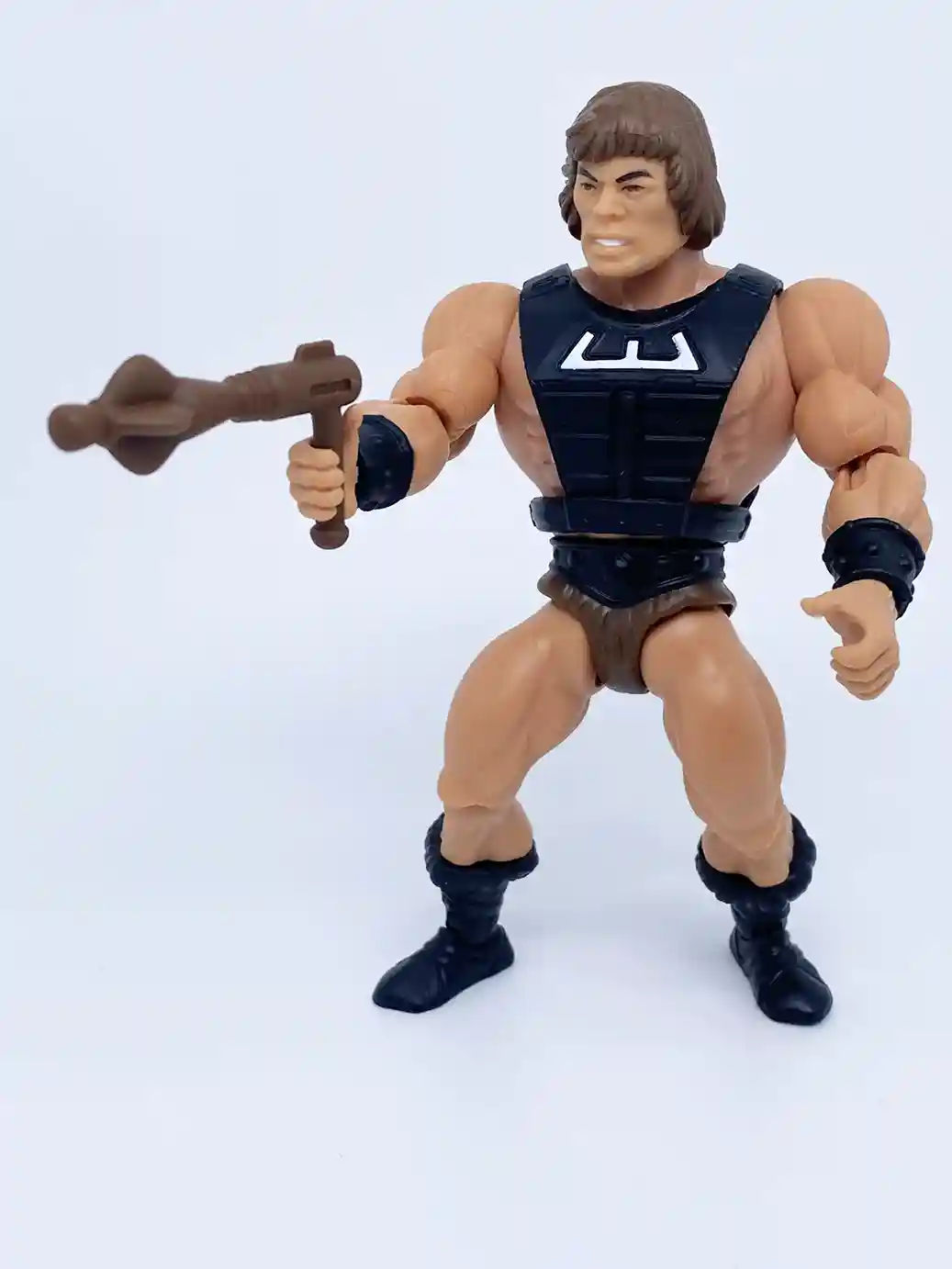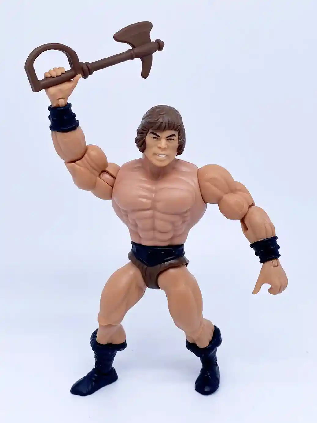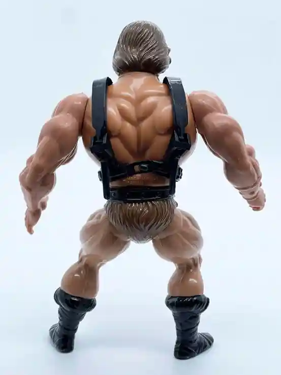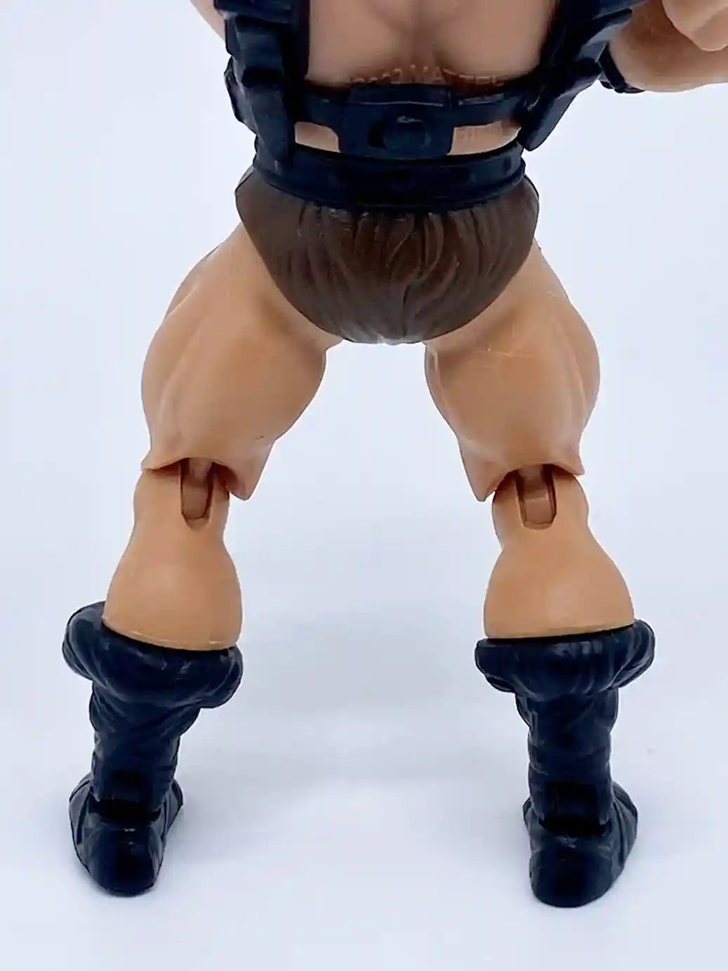 He is wearing the standard He-Man belt but in a matte black finish, and with standard brown furry shorts.