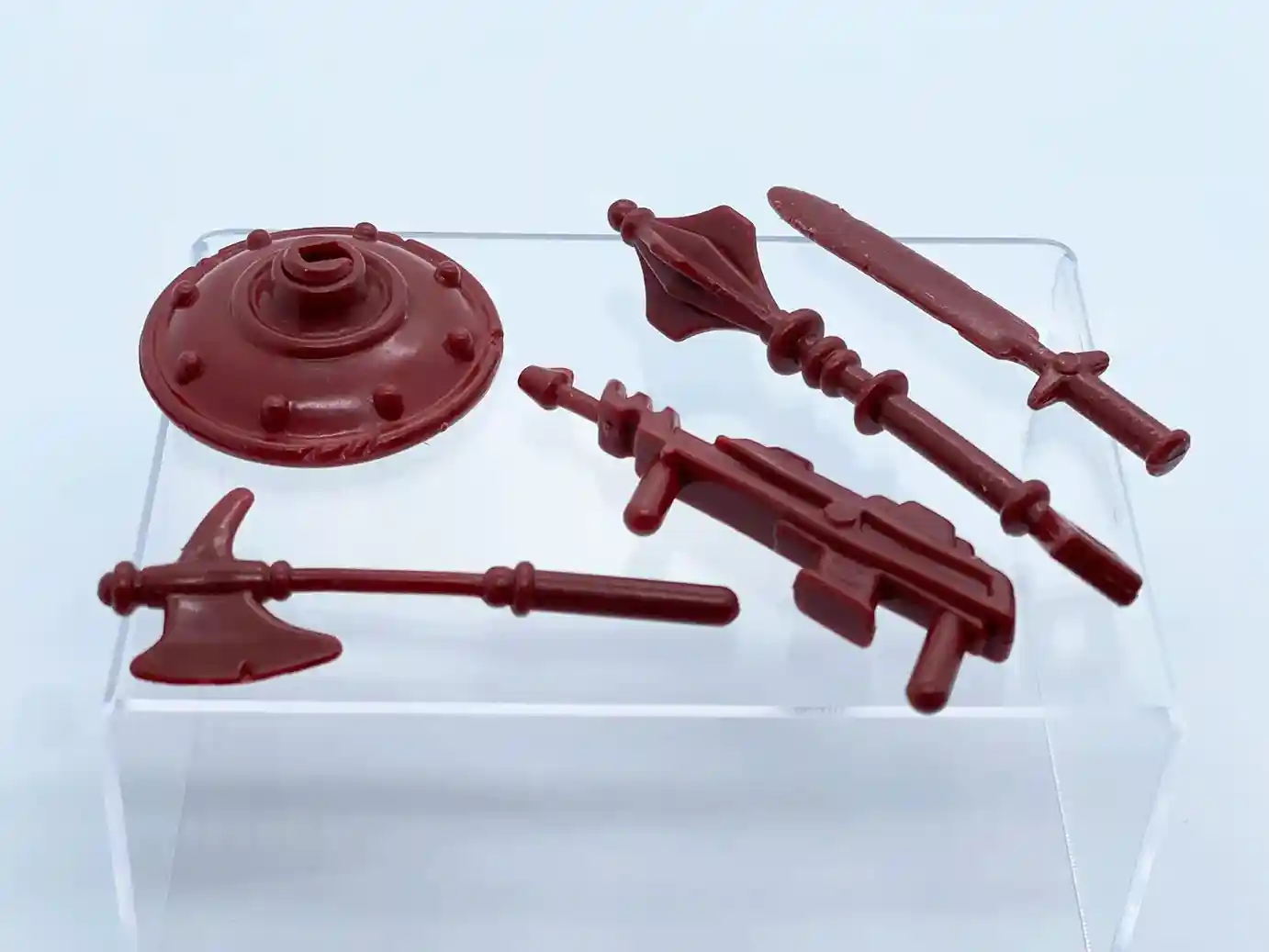 The 1980’s vintage Wun-Dar was also packed with reused Grayskull’s weapons that were cased in a burgundy color.