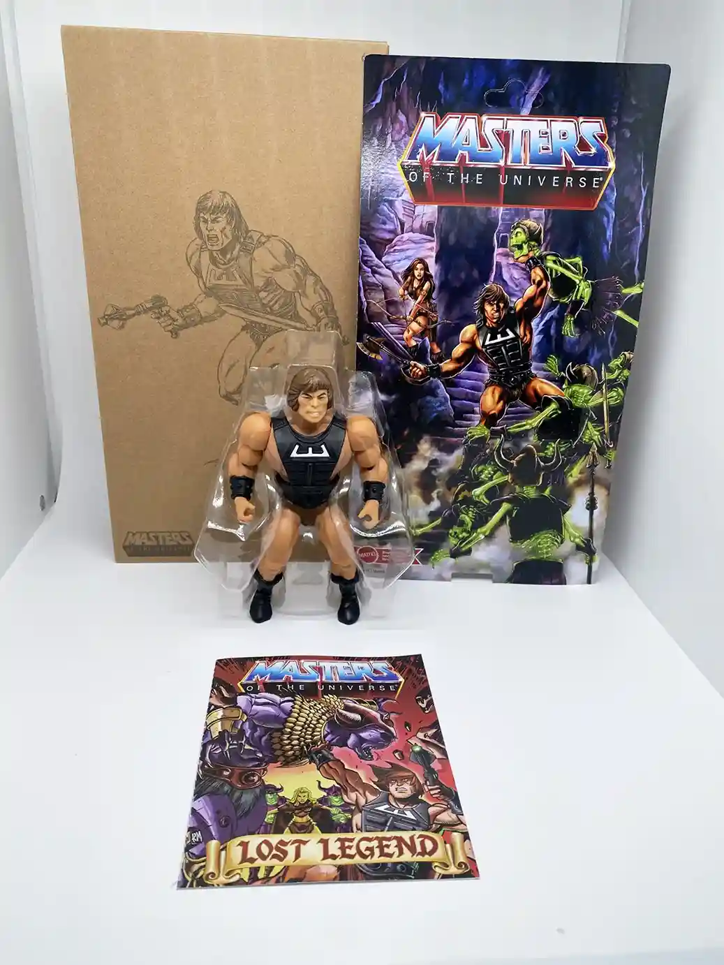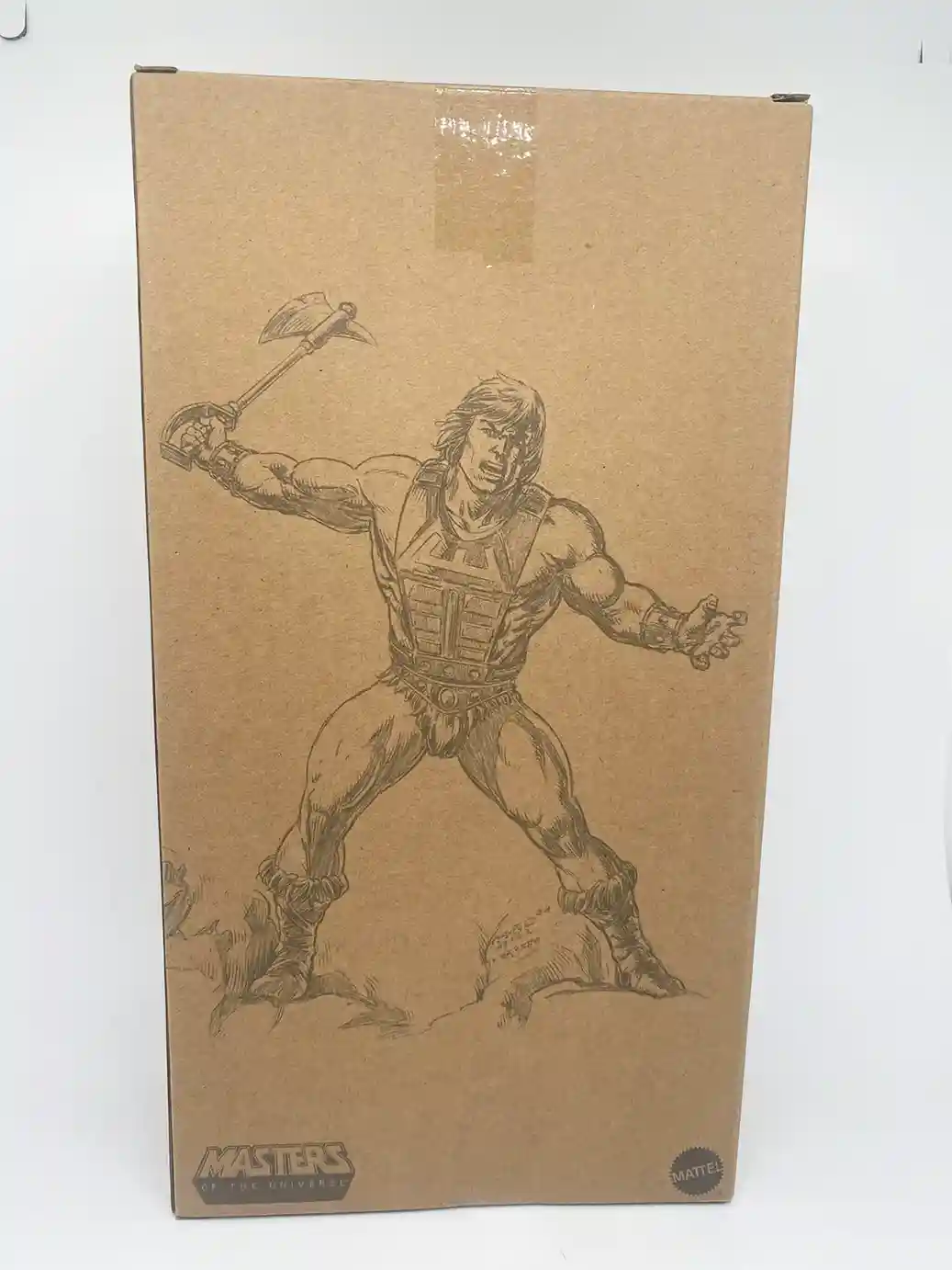 We are treated to the standard brown shipper box, just like Mini Comic Tri-Klops and 2020 SDCC She-Ra came packaged in, but with beautiful artwork pencil sketches by Axel Gimenez. also appeared on past packaging artwork. Wun-Dar can be seen on one side, wheedling his axe, ready to attack. And on the other side he has his blaster and sword.