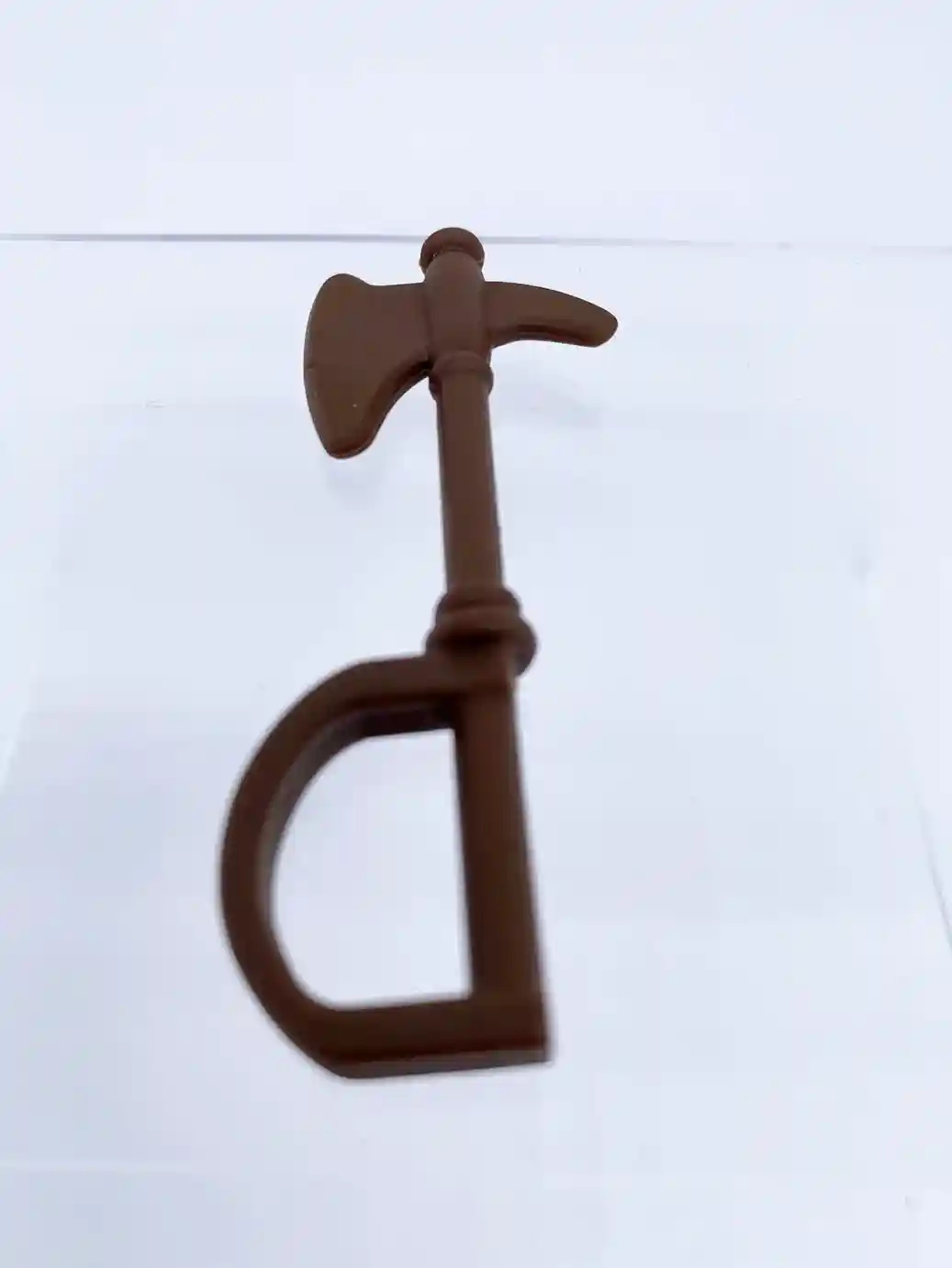 The axe comes directly from the Castle Grayskull Weapons Rack. This axe is a chocolate brown color and has a rounded handle guard on it. It’s more of a one sided axe with a large blade on one side and a short blade on the back. Unlike the double bladed great axe that He-Man usually comes packed with. Wun Dar looks especially great holding it aloft as his alter ego ” Savage He-Man”.