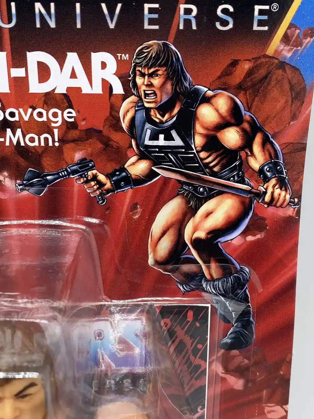 Like the vintage figure, Wun-Dar appears in his black Zodac armor with dark brown hair. His weapons are also cast in the red/brown color scheme like the vintage weapons pack out that supposedly came with Wun-Dar in 1980’s.