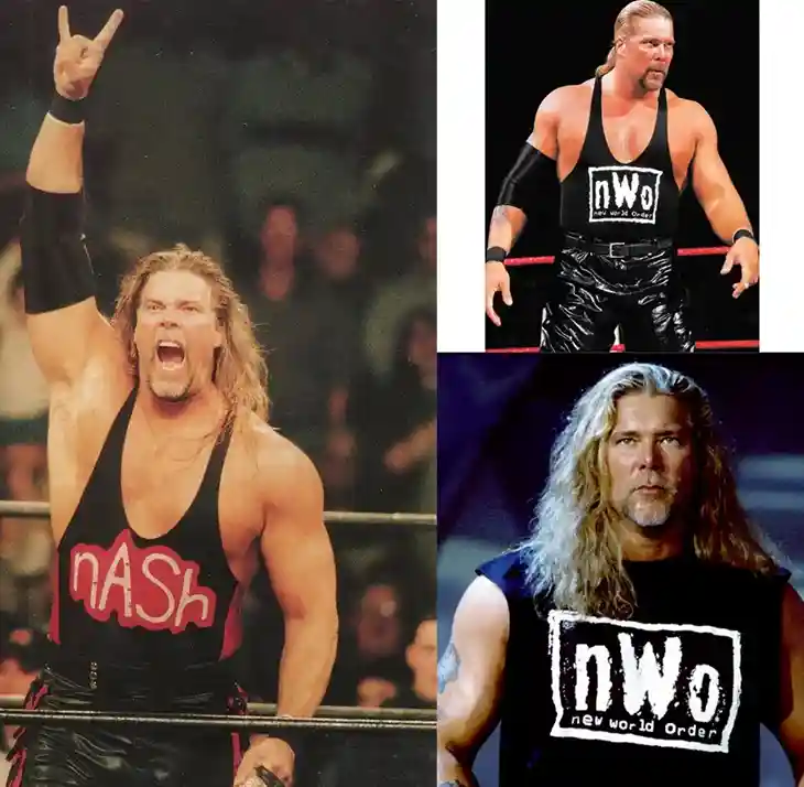 In the spring of 1996, Nash and Scott Hall left WWE and invaded World Championship Wrestling. Soon joining forces with Hulk Hogan, they became known as The New World Order, one of the biggest must-see attractions in history. Defiant, arrogant and dangerous, the rebel group completely dominated WCW and soon had fans tuning into Monday Nitro by the millions. Titles such as the WCW Tag Team Championship turned into nWo trophies as The Outsiders of Nash and Hall flattened many smaller opponents.