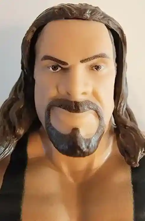 Kevin Nash’s face sculpt includes long brown hair and his signature goatee. He has a very nice-looking paint job for the eyes and eyebrows, not overdone and capture the look on his face perfectly. He also includes multiple multi-colored tattoos on his right biceps that looks like some sort of retile and perhaps a falcon of some sort.