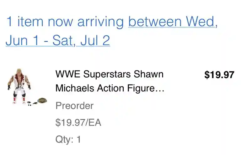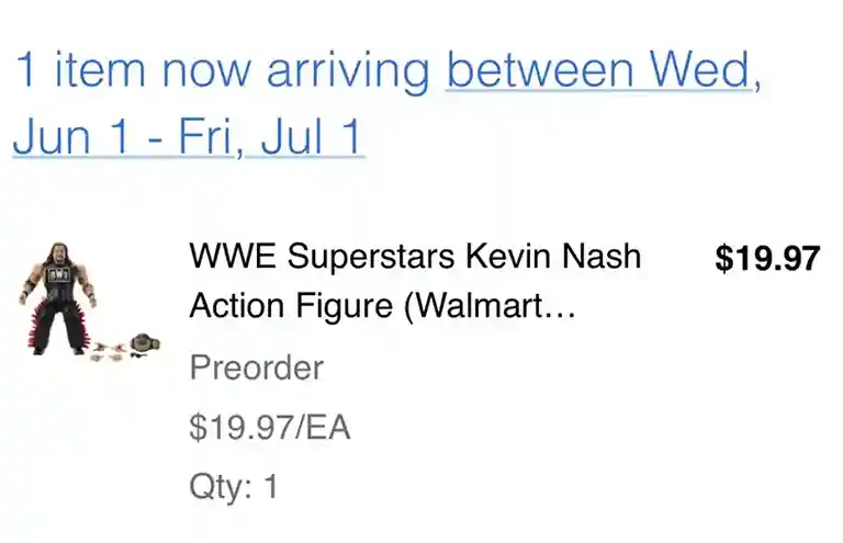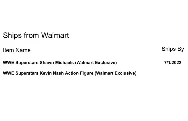On Monday, June 13, 2022, Walmart sent an email out to collectors who preordered Kevin Nash, Shawn Michaels, and Scott Hall with an estimated arrival date for the figures slotted for anytime between June 1, 2022 and July 1, 2022. They then followed with a second email confirming the ship a July 1st ship date for these figures!