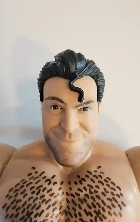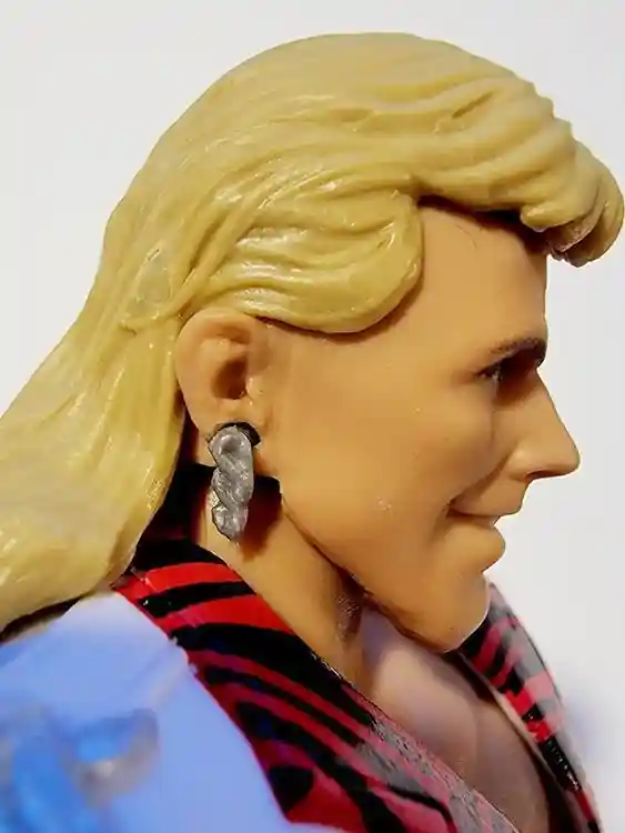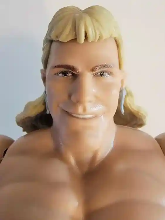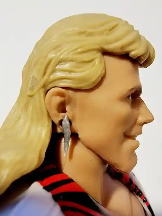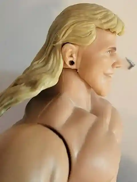 You can see from the photos below, Shawn’s head sculpt that captures the look of his face perfectly. He even has his long blonde mullet hair do! His earring look to be removeable as well. He has a simple paint job for his eyes and eyebrows. Shawn even includes a signature heart with a dagger thru it tattoo on his left bicep! How perfect is that?!