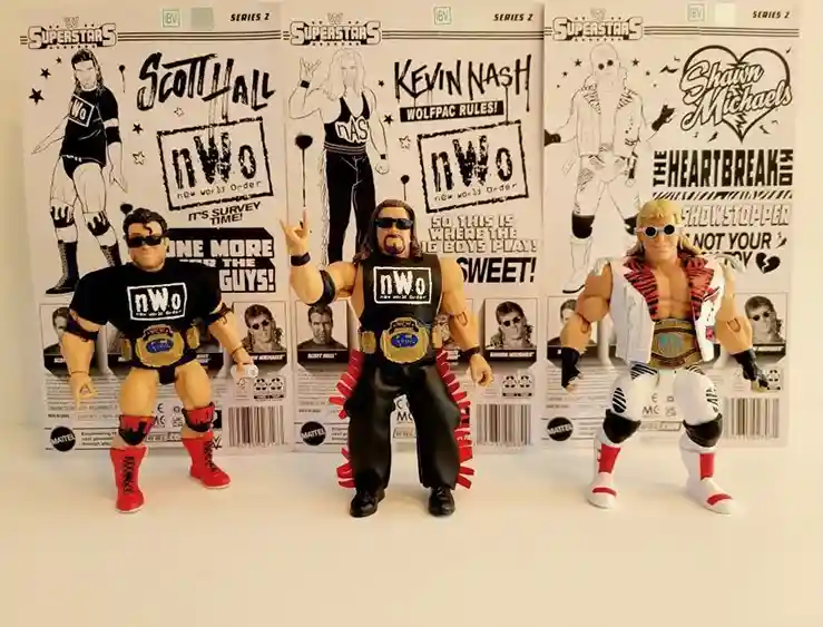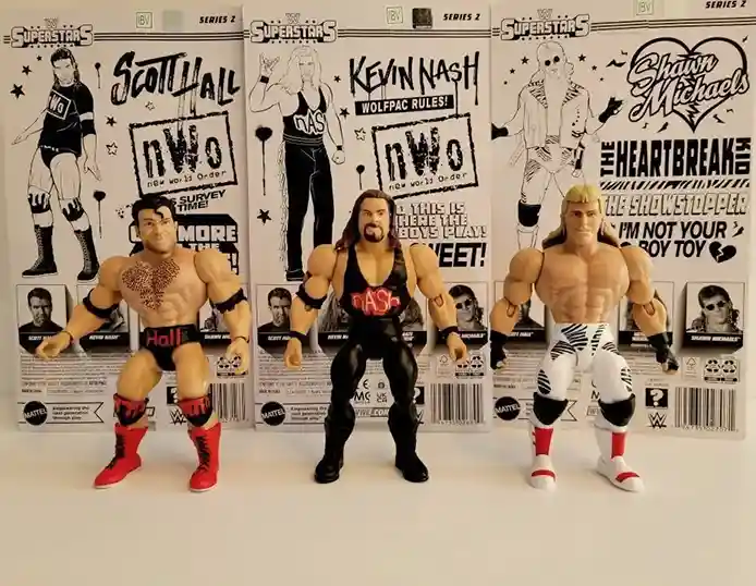 We have in-hand images of the WWE Superstars Series 2 figures featuring Shawn Michaels, Kevin Nash, Scott Hall PLUS we have an update on the ship dates!