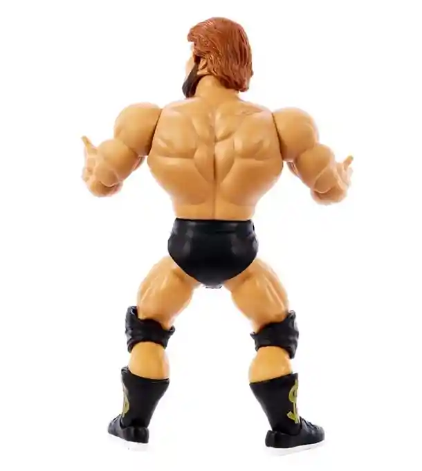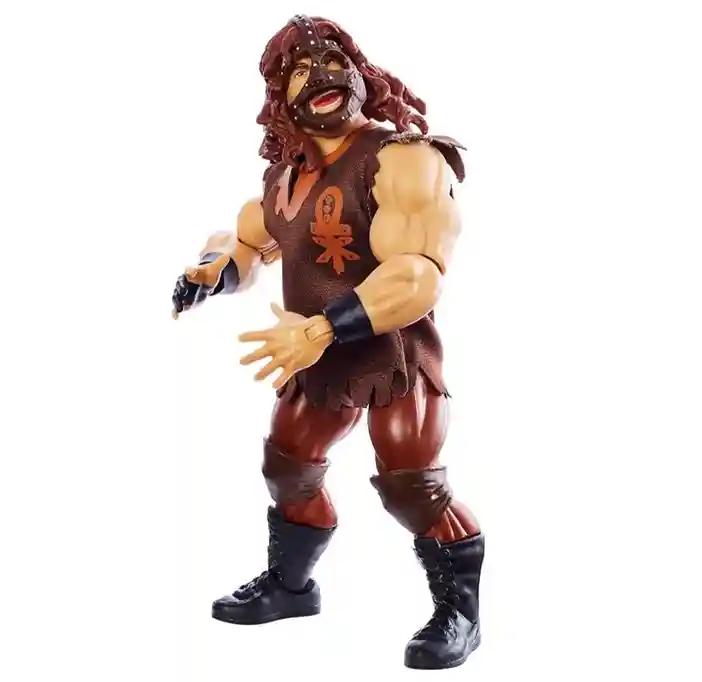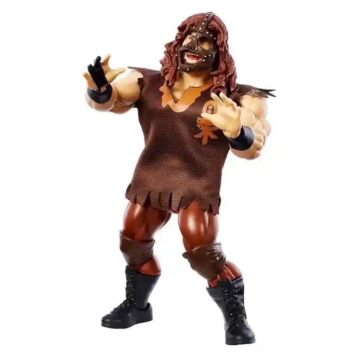 Mrs Foley’s Baby Boy, Mankind is the last of the Series 3 WWE Superstar figures in this latest wave. He is sporting his classsic retro look as well dressed in a soft goods brown entrance gear shirt with his Mankind logo on the left chest. He has black wrist bracers with his right partially gloved hand. He is wearing brown pants with dark brown knee pads and black boots. He includes his signature Mankind face mask! He also includes 2 additional pairs of alternate partially black gloved hands: 2 open hands and 2 closed hands.