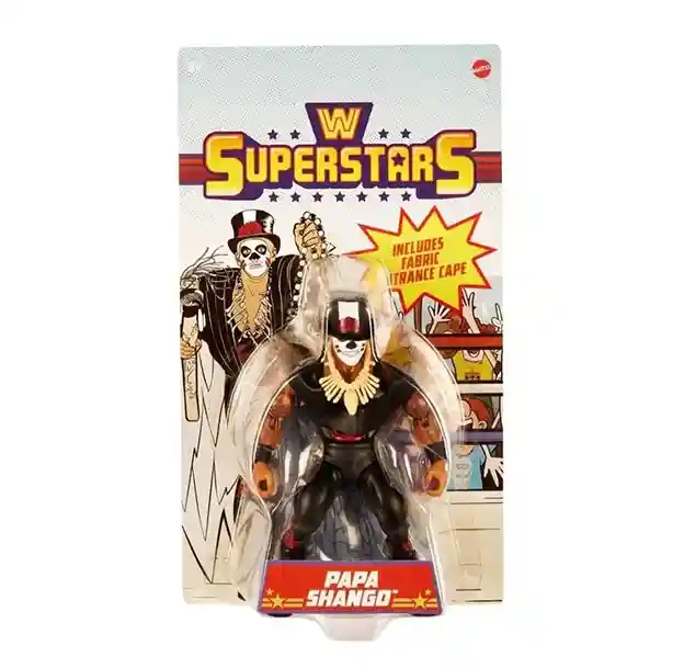 Recreate legendary in-ring moments with the retro-style WWE Superstars Papa Shango action figure! Each figure stands 5.5-inches tall in a muscular form factor signature to 1980’s action figures with modern articulation and includes soft goods entrance gear and signature accessories. Each Superstar figure includes iconic accessories, from entrance gear to championship titles. Collectors and kids can add their favorite WWE Superstars past and present to their collection.