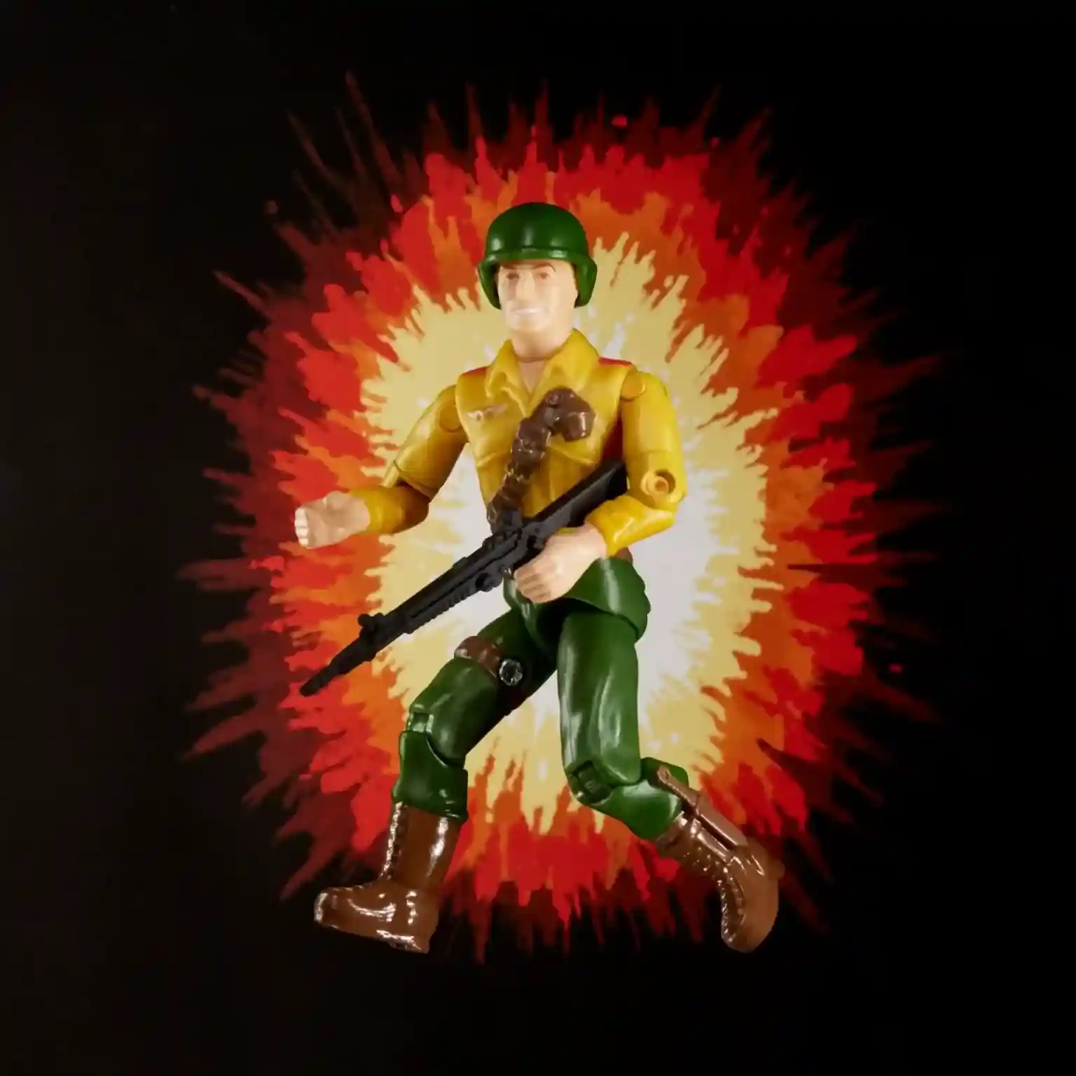 Duke is in his Classic Sunbow cartoon design in a tan shirt and green pants but in the ARAH vintage style O-Ring Figure. He includes the Jetpack he uses to fly away from Cobra Commander in the opening sequence of the cartoon, flag, bazooka, helmet, rifles, vintage green original GI Joe rifle and green backpack.