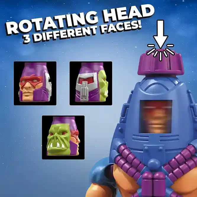 • Man E Faces features a moveable head for all three faces, just like the original from the 80’s.