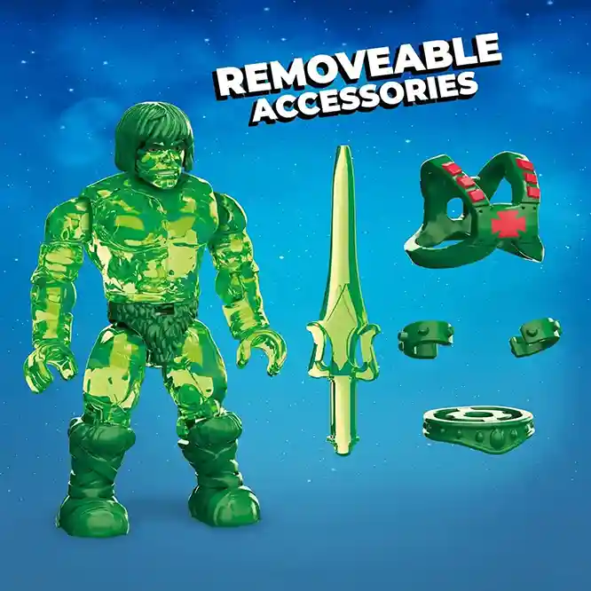 • Includes authentically detailed Zombie He-Man micro action figure with 12 points of articulation, themed armor and Power Sword accessories